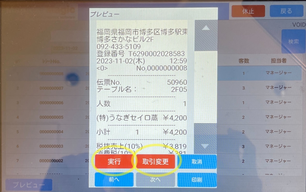 ①日付・店舗名・レジ担当者・レシート番号(誤伝票に記載されている番号)を記入