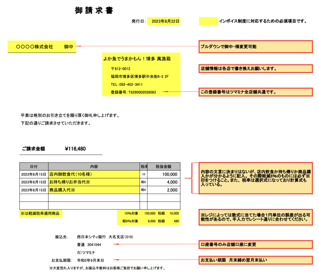 以下の、請求書見本に基づいて作成する。