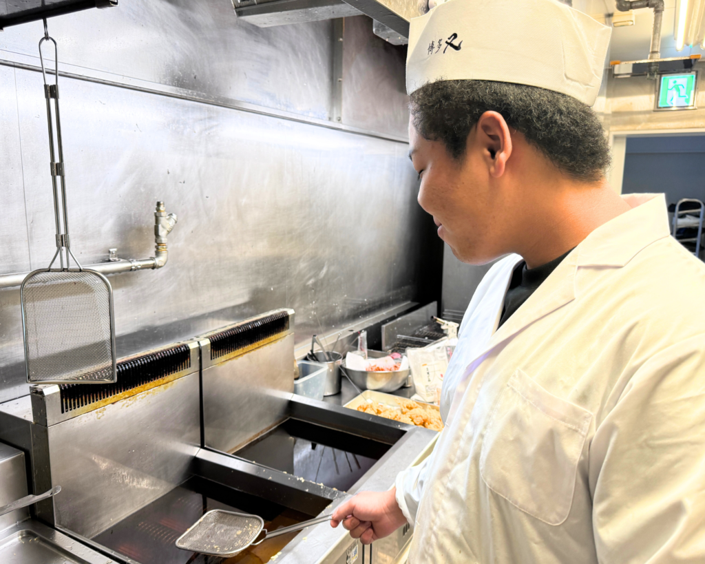 平:やったことがないことばっかりだったので…今、ここで任せてもらっているのは揚げ場で、揚げ場をしながら他のことをやる見たいな感じです。新しいことでは、魚の捌き方を教わったり、その他の料理について学んでいます。