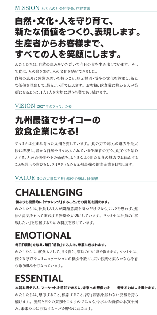 ”お客様はどう思うか?””お客様はどうしたら嬉しいだろう?”…常にお客様視点をスタート地点にし、あるべき店の姿を議論し追求します。21期の1年で、”おもてなし”と”料理(商品)”のスタンダードを再定義し、顧客満足・前年比3割りアップを成し遂げます。